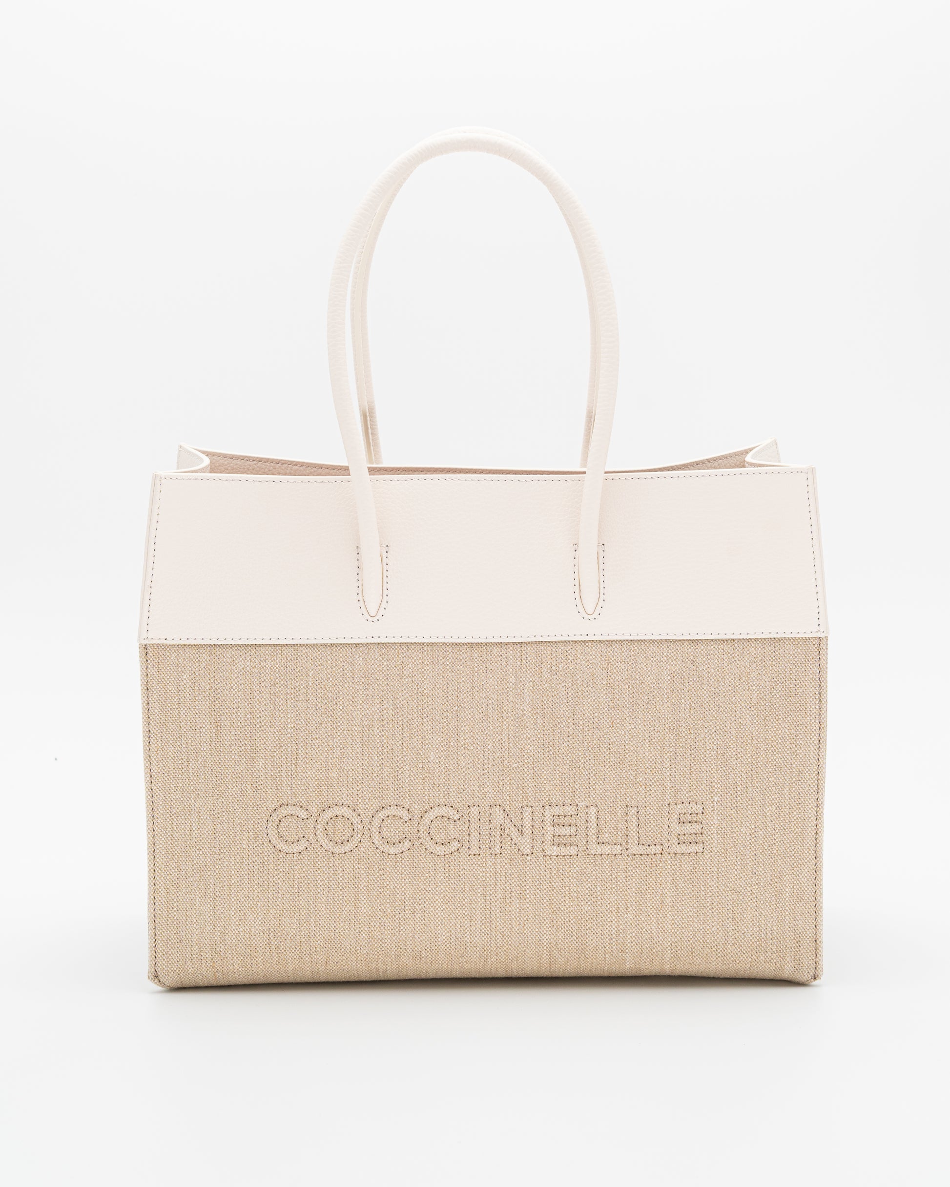 Una rivisitazione dell'iconica Never Without Bag, Coccinelle Myrtha è una tote di cui non puoi fare a meno, pratica e di tendenza caratterizzata dal maxi logo «Coccinelle».
